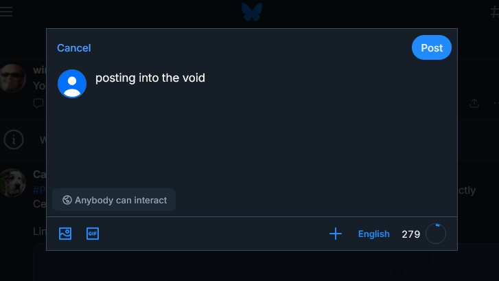 A screenshot from my brief experience being able to post from a did:web account that did not officially exist.